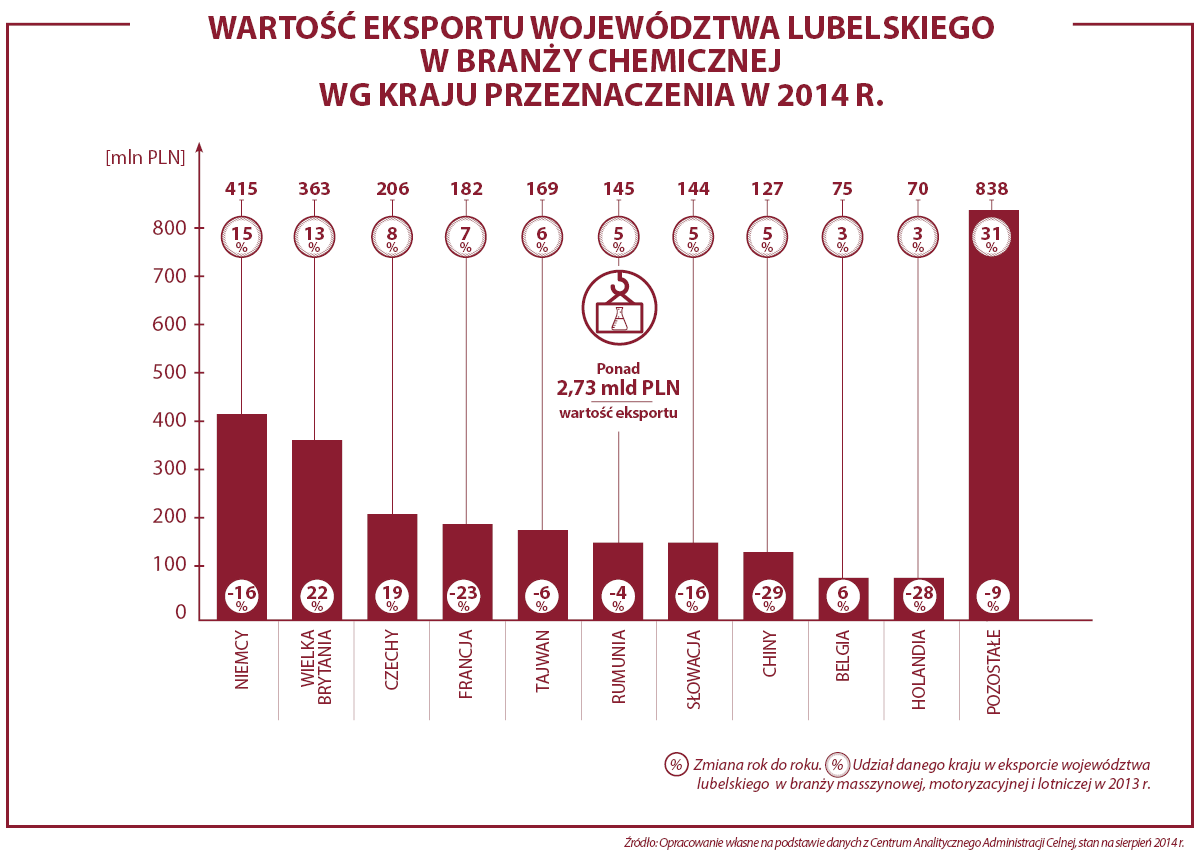 - 25% - udział eksportu branży chemicznej w całym eksporcie województwa lubelskiego w 2014 r.